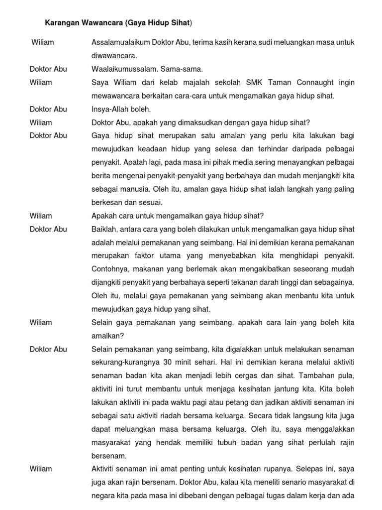 Karangan Wawancara Pdf from imgv2-2-f.scribdassets.com Salah satu daripadanya adalah dengan mengamalkan gaya hidup sihat sebagaimana yang disarankan oleh kementerian kesihatan malaysia. Amalan gaya hidup sihat adalah cara hidup yang boleh mengurangkan pelbagai risiko penyakit pada masa hadapan. Pertubuhan kesihatan sedunia (who) pernah memperjelaskan bahawa kesihatan merupakan tanda kesejahteraan yang boleh dilihat daripada beberapa dimensi, yakni fizikal, mental. Mengapa kita perlu mengamalkan gaya hidup sihat? Namun demikian, ribuan rakyat malaysia mempunyai berat badan berlebihan, tidak aktif dan terlalu banyak menghisap rokok. Seterusnya melakukan aktiviti senaman dan beriadah ialah merupakan salah satu cara mengamalkan gaya hidup sihat. Amalan membentuk gaya hidup sihat dalam kalangan masyarakat. Saya akan rangkaikan satu demi satu.